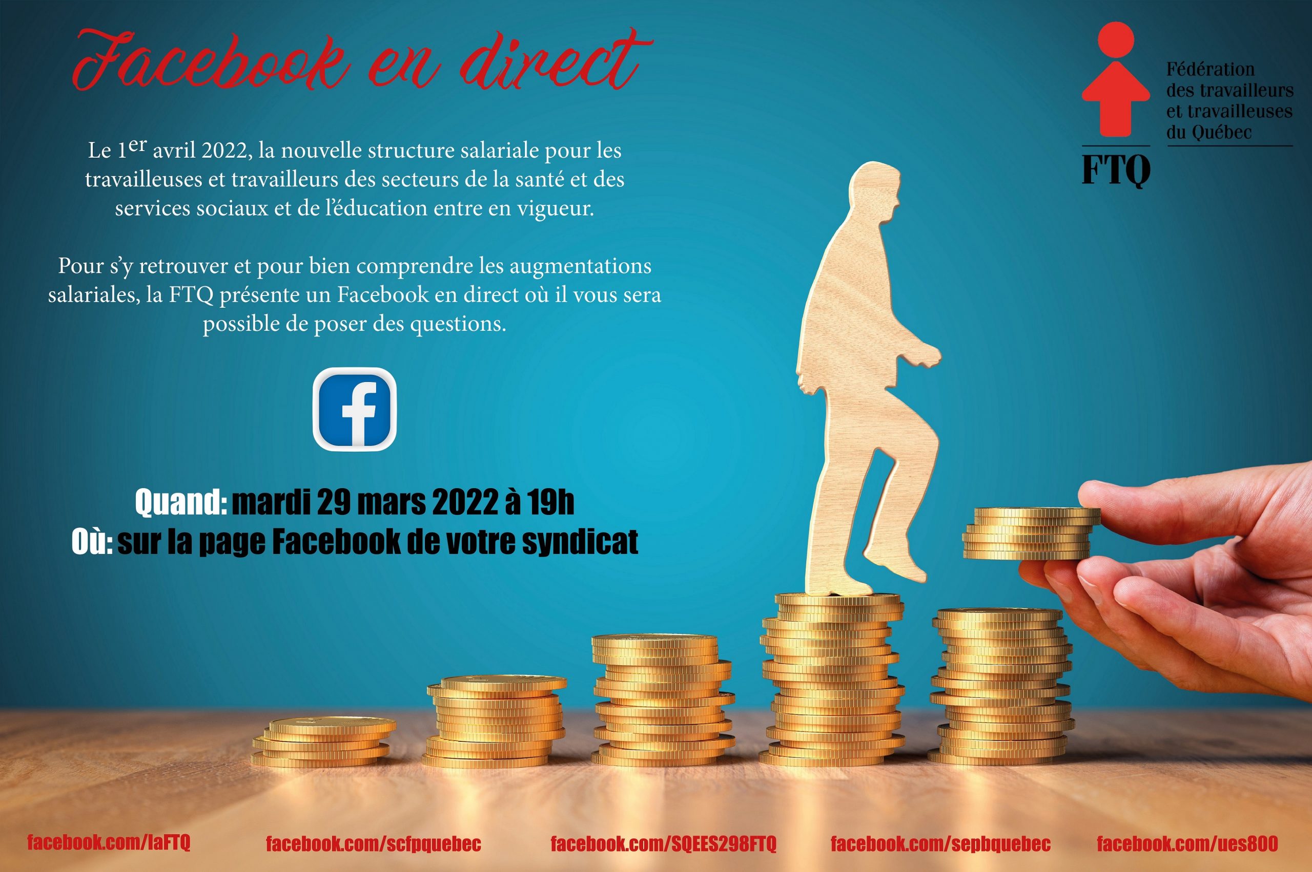La FTQ commente le projet de loi sur la fin de l’urgence sanitaire16 mars 2022SERVICES DE GARDE EN MILIEU SCOLAIRE, LA FTQ DÉPOSE UN MÉMOIRE1 avril 2022 Voir Tout WEBINAIRE – NOUVELLE STRUCTURE SALARIALE POUR LES TRAVAILLEUSES ET TRAVAILLEURS DES SECTEURS DE L’ÉDUCATION ET LA SANTÉ Administrateur Dernières nouvelles et événements26 juin 2025Téléjournal Québec – Front commun contre les coupures en éducation – 26 juin 2025Lire plus5 décembre 2024Réforme du régime de négociationLire plus30 septembre 2024SOUTIEN À LA CLASSELire plus