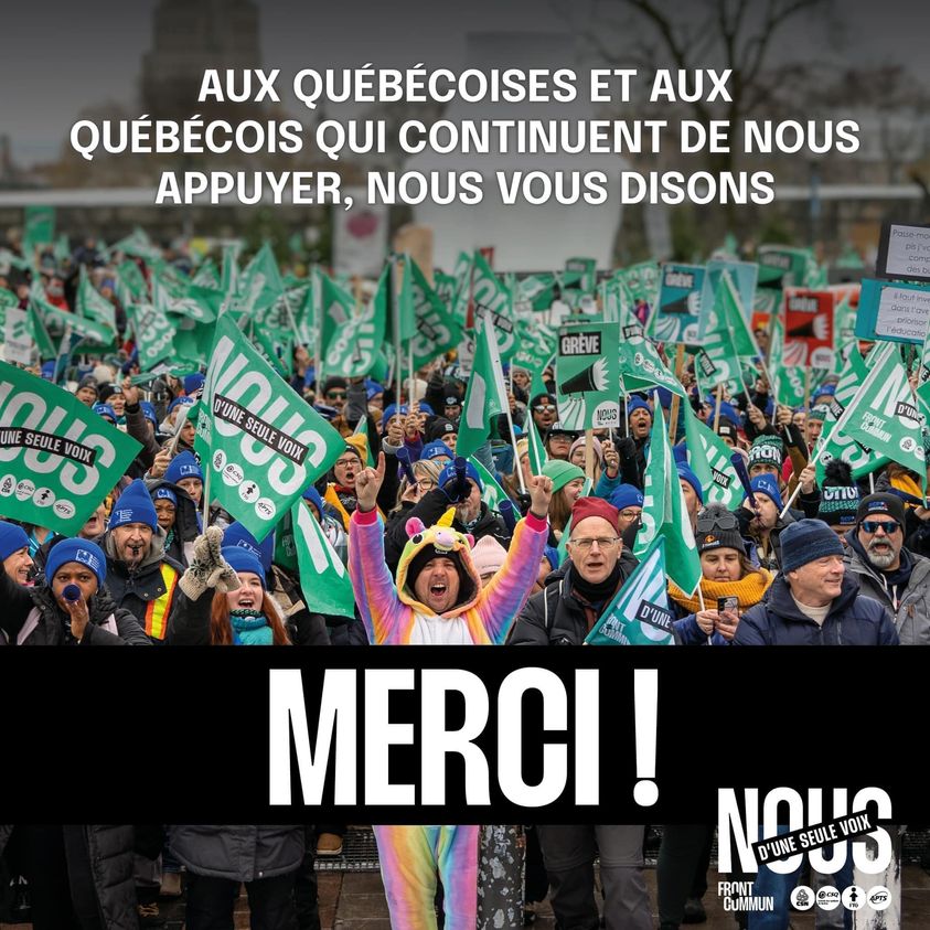 Aujourd’hui, nous sommes 570 000 travailleuses et travailleurs en grève, soit plus de 10 % de la population active québécoise. Jamais dans l’histoire du Québec, du […]